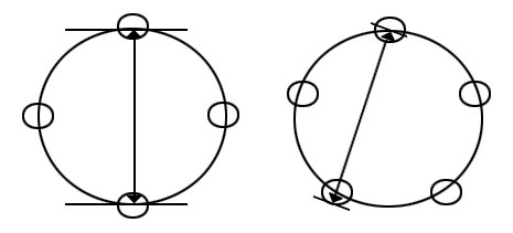 - Bolt pattern - Every vehicle model will have a specific bolt pattern for its wheels so the studs match up with the axle. Heavy duty trucks need more lugs to support greater weight, so they could have an 8 bolt pattern, where a tiny car might have only a 3. You can find out your vehicle’s bolt pattern with an online search of your make and model, and the bolt pattern. Bolt patterns indicate the diameter of a circle (an imaginary circle) formed by joining the centres of all the wheels lugs. Your bolt pattern might be based on 4, 5, 6 or 8-lug holes. For example, a bolt pattern of 5×114.3 mm would be measured like this: