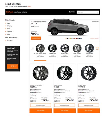 Most wheel manufacturers divide their product lines according to cars, light trucks and SUV’s, so start your search in the right category so you don’t accidentally fall in love with a wheel that only has sizes for cars.